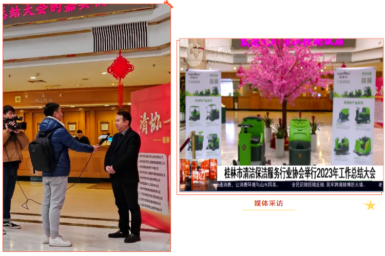 協(xié)會活動現(xiàn)場,瑪西爾品牌受到桂林廣播電臺桂視網(wǎng)記者高度關注。2023年底至2024年初,瑪西爾清潔設備通過廣泛參與各地協(xié)會年會活動,不斷對外擴大宣傳與知名度,尋求更深層次的銷售戰(zhàn)略合作。桂林主流新聞媒體對清潔行業(yè)動態(tài)的關注,進一步驗證了物業(yè)服務行業(yè)未來“人機協(xié)同”發(fā)展、機械化作業(yè)的大趨勢。
