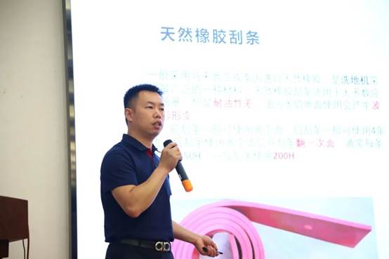 瑪西爾清潔設(shè)備國內(nèi)銷售經(jīng)理化身知識傳播者,從清潔設(shè)備的配件選擇、使用操作到日常維護,全方位、深入淺出地為現(xiàn)場嘉賓帶來一場干貨滿滿的理論課程,讓專業(yè)知識“落地生根”。