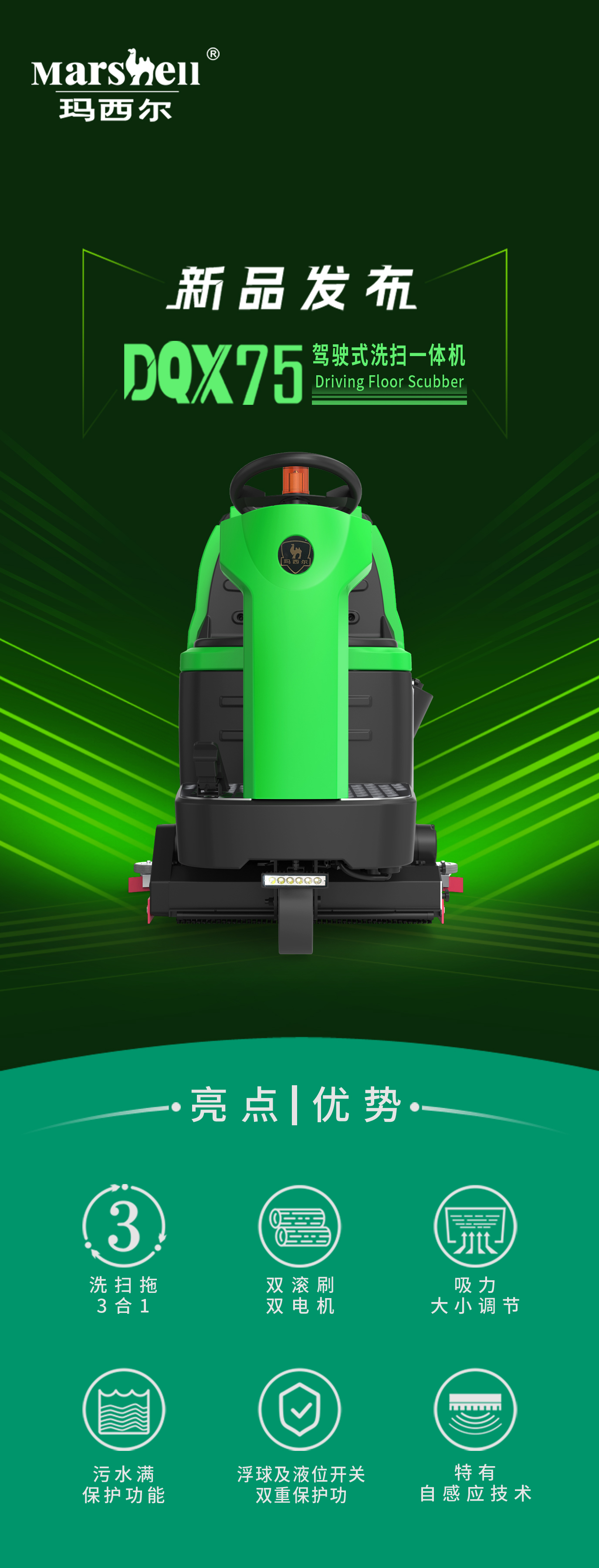 瑪西爾DQX75洗掃一體機(jī) | 突破性三合一清潔模式!