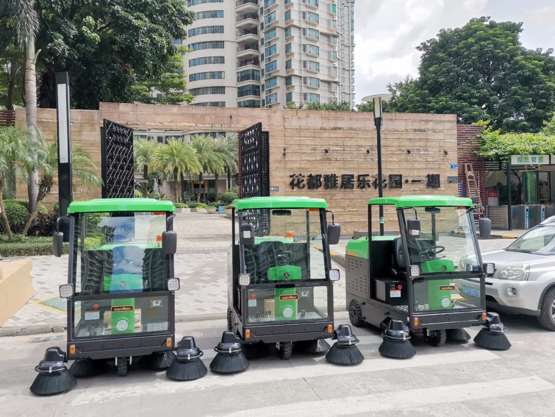 瑪西爾電動清潔設(shè)備入駐廣州雅居樂花園,駕駛式掃地車,駕駛式洗地機(jī)就是物業(yè)保潔好幫手!