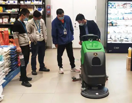 商場、超市地面多采用瓷磚設(shè)計,易沾污漬,難清洗,使用電動洗地機(jī)可以提高保潔人員工作效率。洗地機(jī)自帶清水箱、污水箱,自動釋放清水,自動吸走污水,電動洗地機(jī)、電動掃地車的出現(xiàn)讓商場超市的地面清潔邁上了智慧清潔新臺階。清潔設(shè)備網(wǎng)